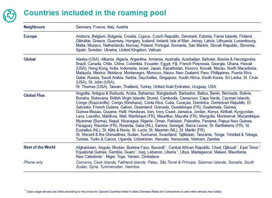 You will also see roaming prices or prices for roaming or data packages in the Swisscom Cockpit – but these do not apply to you, as the offer includes unlimited inclusive units. So please don’t buy any additional packages – you don’t need them!